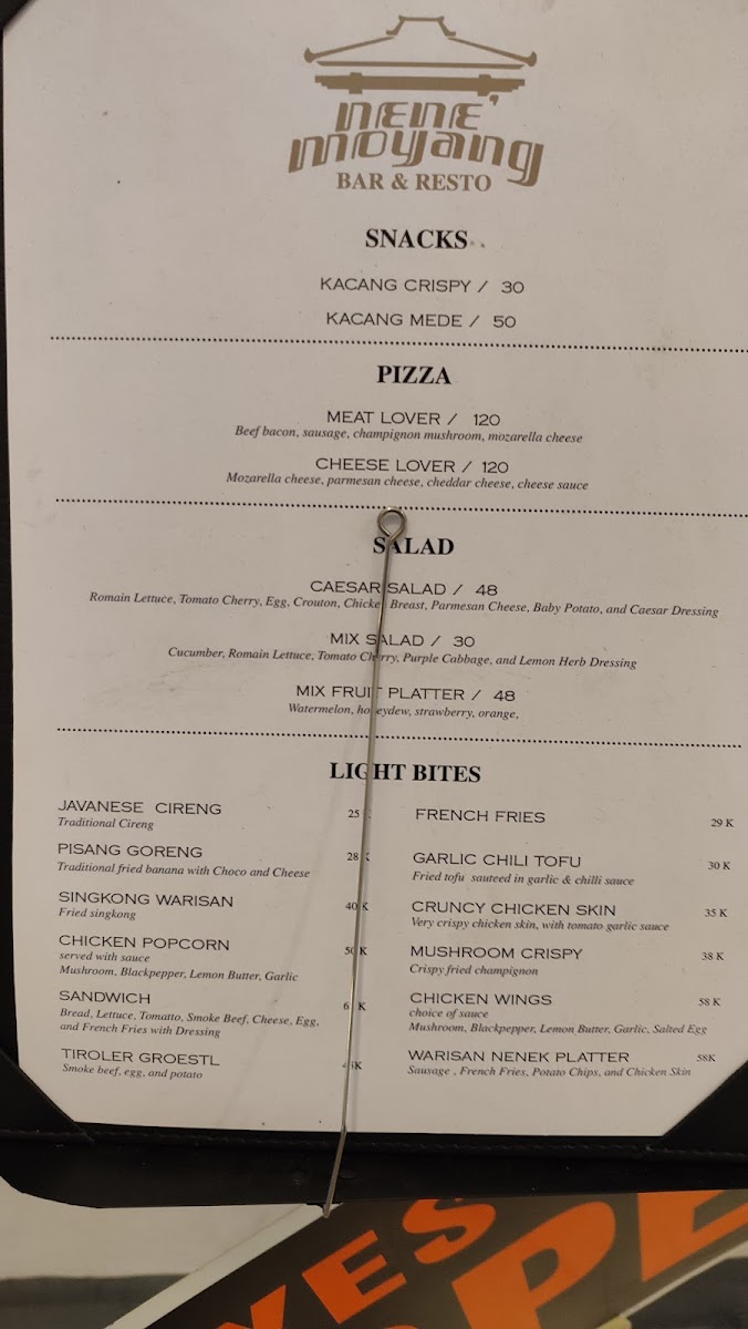 Nene' Moyang Bar & Resto offers a delightful culinary experience tucked away in the heart of Jakarta Pusat. This cozy yet spacious venue charms guests with its inviting ambiance, perfect for intimate dinners or lively gatherings. The menu shines with a variety of flavorful dishes that reflect rich Indonesian heritage, all crafted to satisfy diverse palates. Guests frequently praise the tasty meals, highlighting their freshness and authentic taste. Complemented by attentive and friendly service, each visit feels warm and welcoming. Whether enjoying a casual meal with friends or savoring a special dinner accompanied by live music, the food consistently impresses with balanced flavors and generous portions. The venue’s big screen and stage create an engaging atmosphere, ideal for special events or simply unwinding after a busy day. Overall, Nene' Moyang Bar & Resto is a top choice for those seeking a memorable dining experience blending great food, comfort, and vibrant local culture.